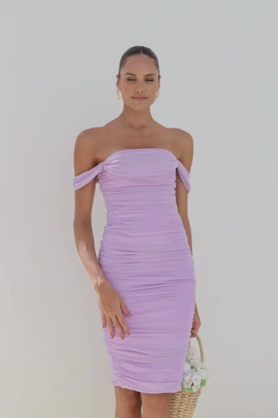 ZIA OFF SHOULDER BODYCON DRESS IN RED WINE